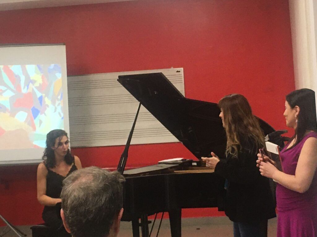Coloquio y concierto comentado realizado en Madrid. Patricia Mendoza, piano. Adriana Santos Melgarejo, comentarios. Participaron en el Coloquio: Carmen Cecilia Piñero Gil (Representante de ComuArte en España, doctora en Historia y Ciencias de la Música, título Superior de Música), Gabriela Aceves Sepúlveda (profesora asociada en la Universidad Simon Fraser de Canadá y directora de cMAS), Miguel Molina-Alarcón (Catedrático de la Facultad de Bellas Artes de la Universitat Politècnica de València. Artista sonoro e investigador en la recuperación de los antecedentes del arte sonoro de la vanguardia española e hispanoamericana, entre ellas, las obras de Carmen Barradas, mediante actividades del grupo de investigación Laboratorio de Creaciones Intermedia (LCI), Instituto Valenciano de Arte) y Juan Manuel Bonet (crítico de arte y de literatura, poeta, comisario de exposiciones y museólogo español. Fue director del Moderno (IVAM) y del Museo Nacional Centro de Arte Reina Sofía de Madrid. Moderó: Adriana Santos Melgarejo. Se contó con el apoyo de la Embajada de Uruguay en España, a través de la difusión del evento y la colaboración económica a través de la financiación del alojamiento en Madrid.