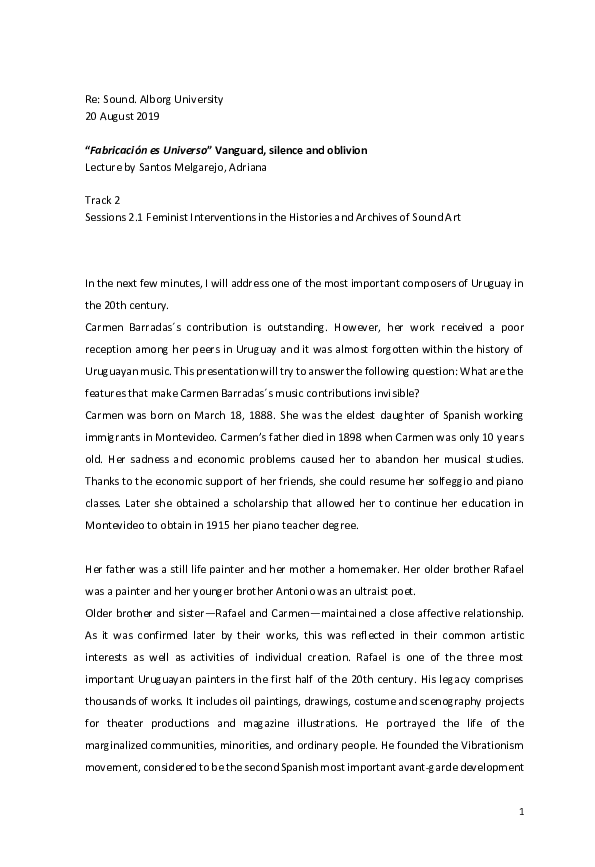 En 2023 gestionó y llevó a cabo el Homenaje a la compositora hispano-uruguaya Carmen Barradas (1888-1963) “A cien años del estreno de Fabricación en El Ateneo de Madrid”, evento realizado en Buenos Aires, Madrid y Barcelona, que contó con el apoyo del programa Ibermúsicas de la Secretaría de la Organización de Estados Iberoamericanos (OEI) y la declaración de interés ministerial del MEC y del MRREE. Que continuó con una gira nacional financiada por el Inmus (Instituto de Música) del Mec, por tres capitales departamentales, Canelones (Complejo Politeama), Montevideo (Palacio Taranco) y San José (conservatorio Municipal de Música).